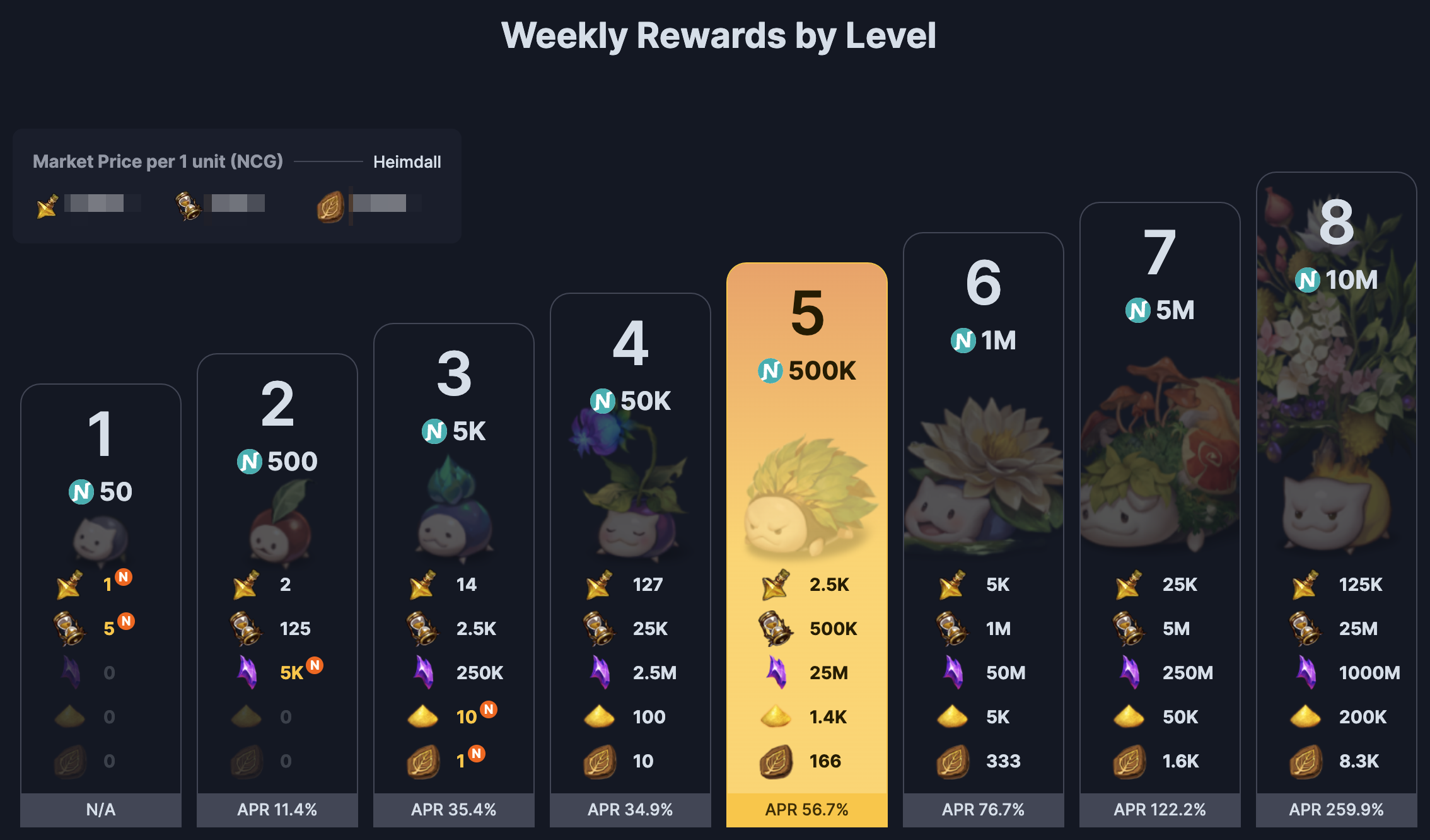 Also, below you can find a table with the amount of NCG required to unlock each monster of the collection and the equivalent reward in AP Potions, hourglasses and other materials per week.